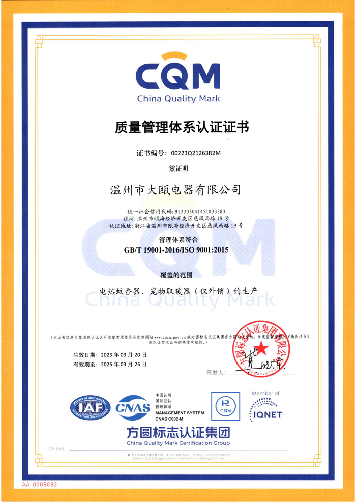 秉承“以人為本,以質(zhì)取勝”的經(jīng)營理念,三十余載櫛風沐雨,踐行“成就客戶、價值為本、誠信務實、追求卓越”的核心價值觀。大甌公司堅持以產(chǎn)研一體化的經(jīng)營模式與差異化的競爭戰(zhàn)略為基點,持續(xù)推出細分市場上的多種類產(chǎn)品,豐富產(chǎn)品矩陣,滿足消費者多樣化需求,助力新型驅蚊行業(yè)高速發(fā)展。